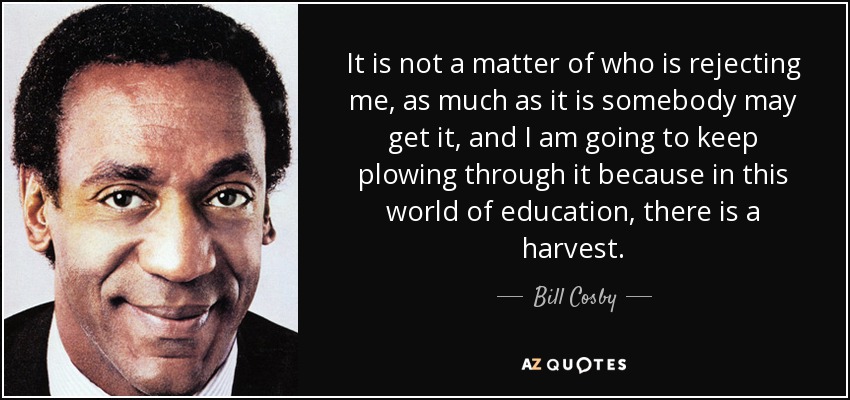 It is not a matter of who is rejecting me, as much as it is somebody may get it, and I am going to keep plowing through it because in this world of education, there is a harvest.
