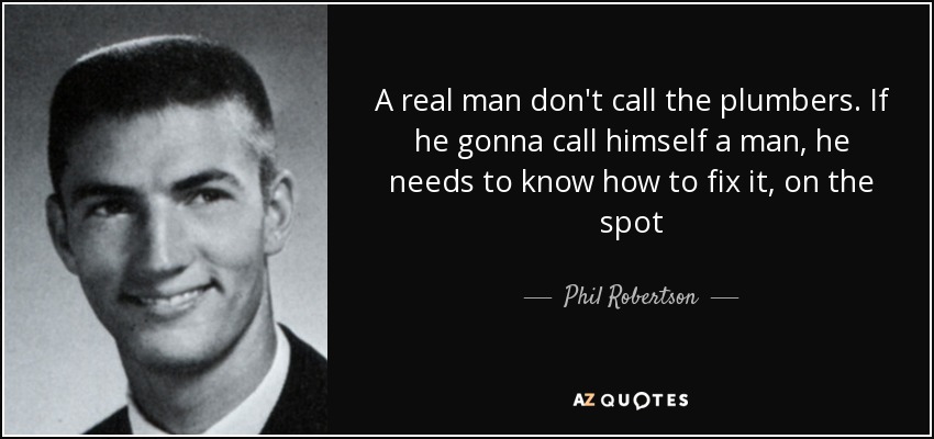 A real man don't call the plumbers. If he gonna call himself a man, he needs to know how to fix it, on the spot