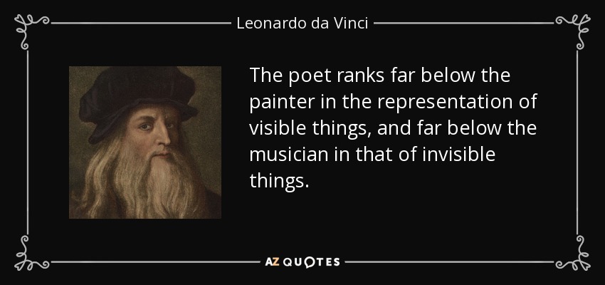 The poet ranks far below the painter in the representation of visible things, and far below the musician in that of invisible things.