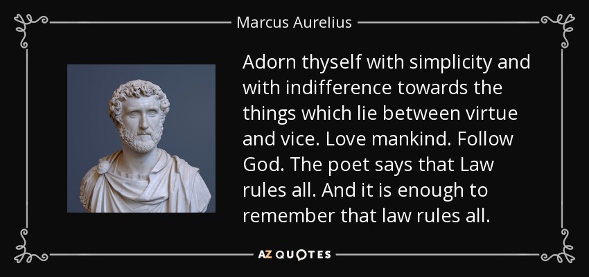 Adorn thyself with simplicity and with indifference towards the things which lie between virtue and vice. Love mankind. Follow God. The poet says that Law rules all. And it is enough to remember that law rules all.
