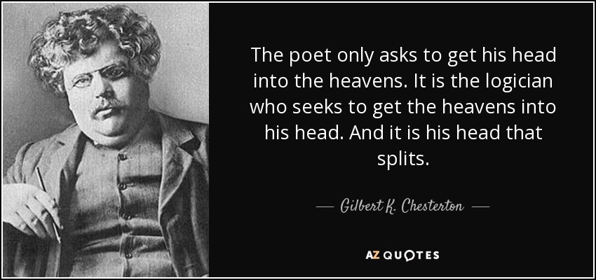 The poet only asks to get his head into the heavens. It is the logician who seeks to get the heavens into his head. And it is his head that splits.
