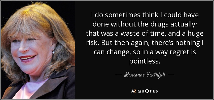 I do sometimes think I could have done without the drugs actually; that was a waste of time, and a huge risk. But then again, there's nothing I can change, so in a way regret is pointless.