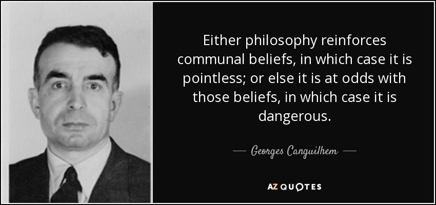 Either philosophy reinforces communal beliefs, in which case it is pointless; or else it is at odds with those beliefs, in which case it is dangerous.