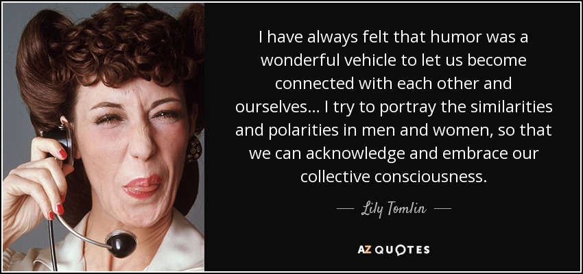 I have always felt that humor was a wonderful vehicle to let us become connected with each other and ourselves… I try to portray the similarities and polarities in men and women, so that we can acknowledge and embrace our collective consciousness.