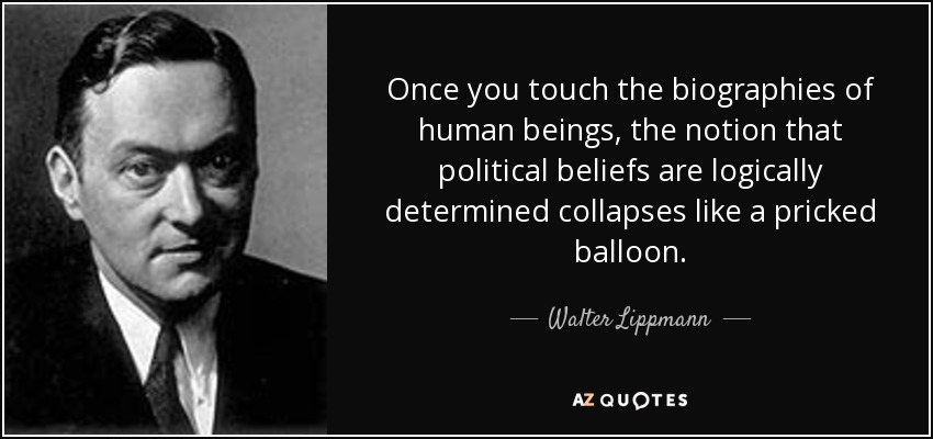 Once you touch the biographies of human beings, the notion that political beliefs are logically determined collapses like a pricked balloon.