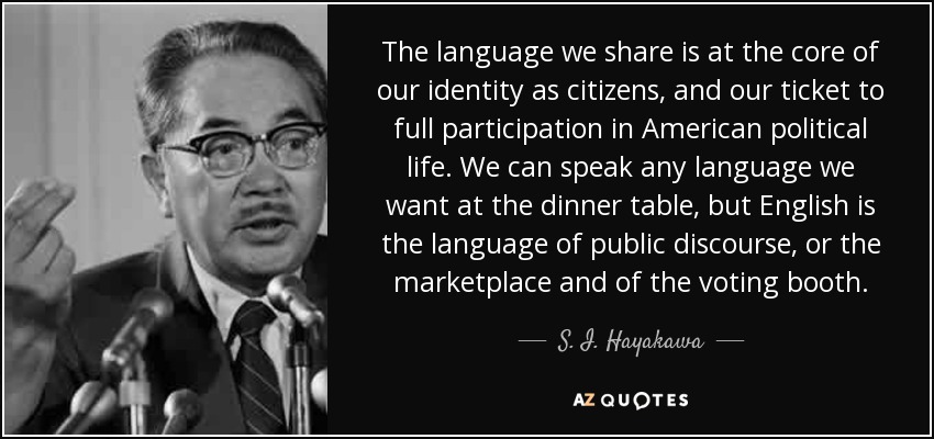 The language we share is at the core of our identity as citizens, and our ticket to full participation in American political life. We can speak any language we want at the dinner table, but English is the language of public discourse, or the marketplace and of the voting booth.