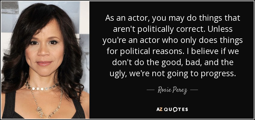 As an actor, you may do things that aren't politically correct. Unless you're an actor who only does things for political reasons. I believe if we don't do the good, bad, and the ugly, we're not going to progress.