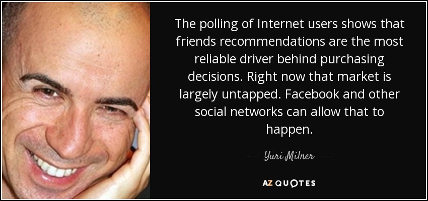 The polling of Internet users shows that friends recommendations are the most reliable driver behind purchasing decisions. Right now that market is largely untapped. Facebook and other social networks can allow that to happen.