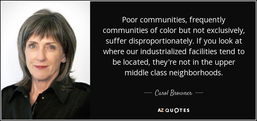 Poor communities, frequently communities of color but not exclusively, suffer disproportionately. If you look at where our industrialized facilities tend to be located, they're not in the upper middle class neighborhoods.