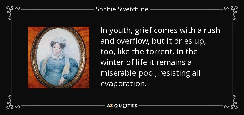 In youth, grief comes with a rush and overflow, but it dries up, too, like the torrent. In the winter of life it remains a miserable pool, resisting all evaporation.