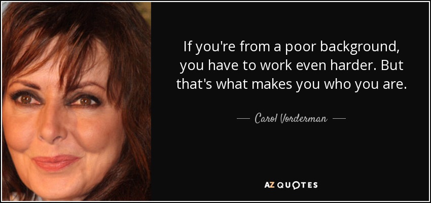If you're from a poor background, you have to work even harder. But that's what makes you who you are.