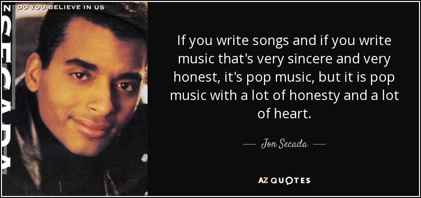 If you write songs and if you write music that's very sincere and very honest, it's pop music, but it is pop music with a lot of honesty and a lot of heart.