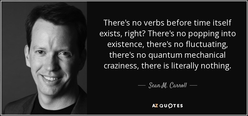 There's no verbs before time itself exists, right? There's no popping into existence, there's no fluctuating, there's no quantum mechanical craziness, there is literally nothing.