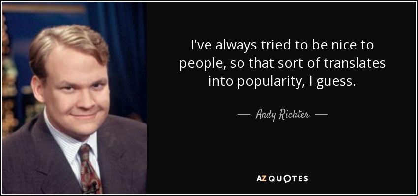 I've always tried to be nice to people, so that sort of translates into popularity, I guess.