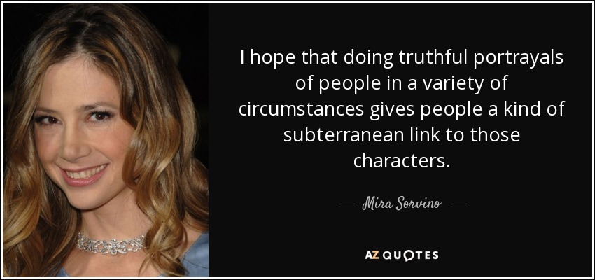 I hope that doing truthful portrayals of people in a variety of circumstances gives people a kind of subterranean link to those characters.