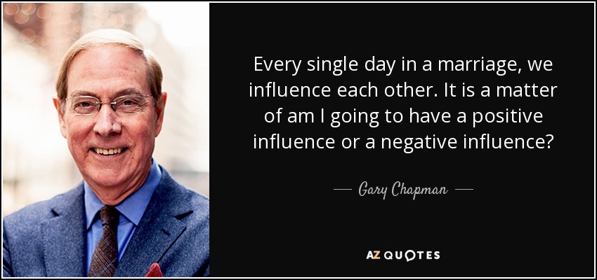 Every single day in a marriage, we influence each other. It is a matter of am I going to have a positive influence or a negative influence?