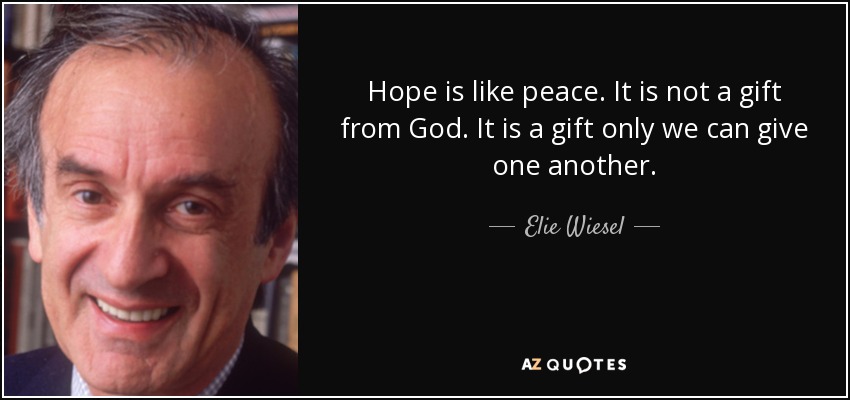 Hope is like peace. It is not a gift from God. It is a gift only we can give one another.