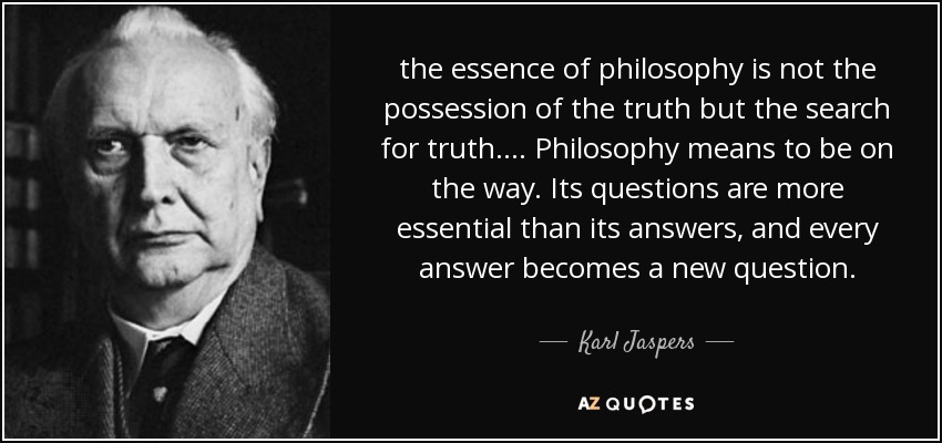 the essence of philosophy is not the possession of the truth but the search for truth. ... Philosophy means to be on the way. Its questions are more essential than its answers, and every answer becomes a new question.