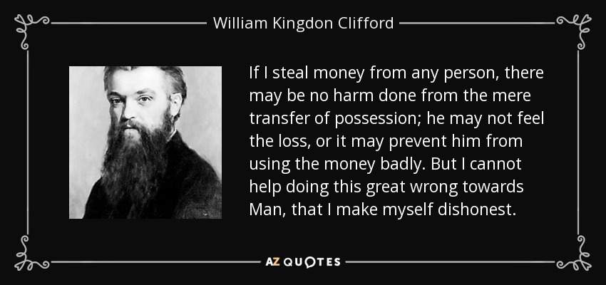If I steal money from any person, there may be no harm done from the mere transfer of possession; he may not feel the loss, or it may prevent him from using the money badly. But I cannot help doing this great wrong towards Man, that I make myself dishonest.