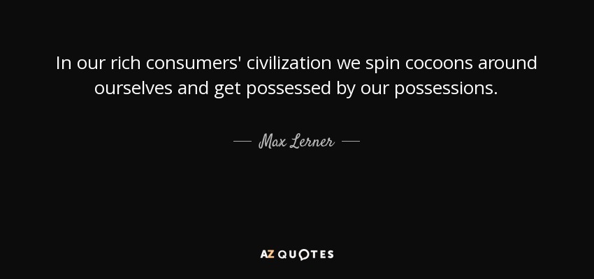 In our rich consumers' civilization we spin cocoons around ourselves and get possessed by our possessions.