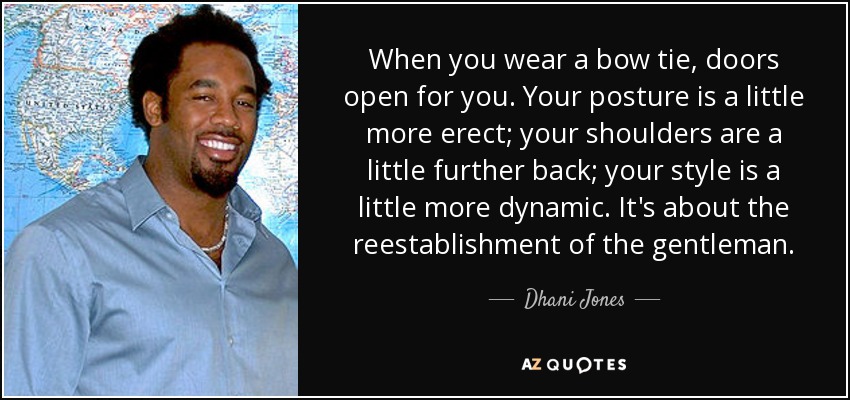 When you wear a bow tie, doors open for you. Your posture is a little more erect; your shoulders are a little further back; your style is a little more dynamic. It's about the reestablishment of the gentleman.