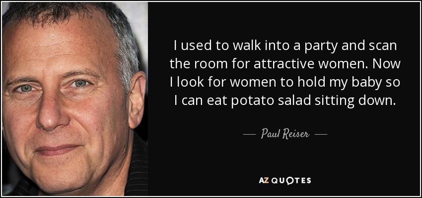 I used to walk into a party and scan the room for attractive women. Now I look for women to hold my baby so I can eat potato salad sitting down.