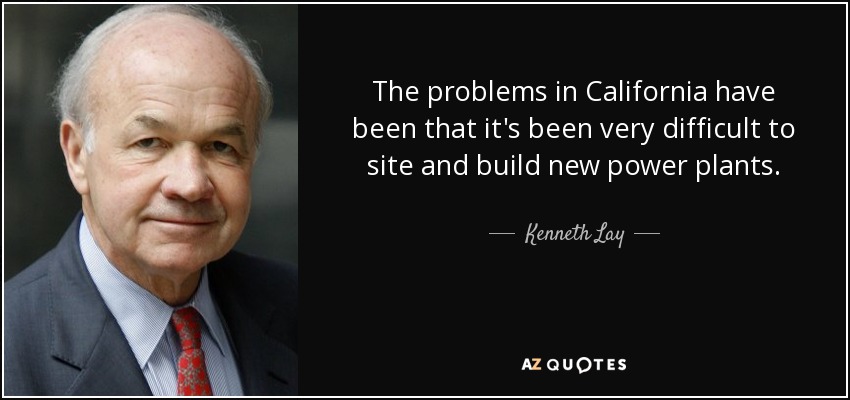 The problems in California have been that it's been very difficult to site and build new power plants.