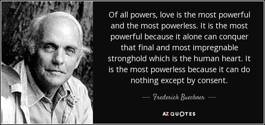 Of all powers, love is the most powerful and the most powerless. It is the most powerful because it alone can conquer that final and most impregnable stronghold which is the human heart. It is the most powerless because it can do nothing except by consent.
