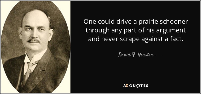 One could drive a prairie schooner through any part of his argument and never scrape against a fact.