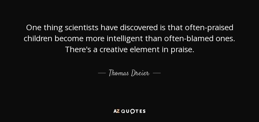 One thing scientists have discovered is that often-praised children become more intelligent than often-blamed ones. There's a creative element in praise.