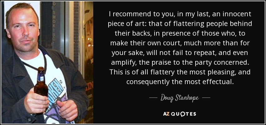 I recommend to you, in my last, an innocent piece of art: that of flattering people behind their backs, in presence of those who, to make their own court, much more than for your sake, will not fail to repeat, and even amplify, the praise to the party concerned. This is of all flattery the most pleasing, and consequently the most effectual.