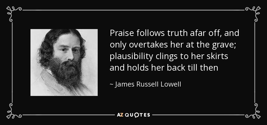 Praise follows truth afar off, and only overtakes her at the grave; plausibility clings to her skirts and holds her back till then