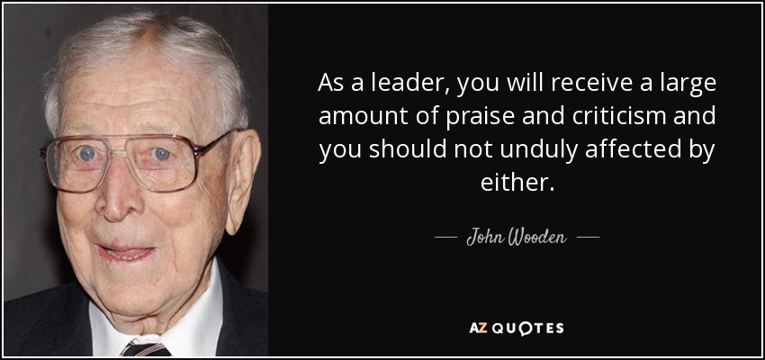 As a leader, you will receive a large amount of praise and criticism and you should not unduly affected by either.
