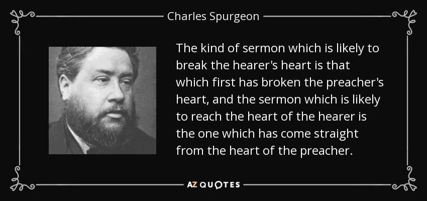 The kind of sermon which is likely to break the hearer's heart is that which first has broken the preacher's heart, and the sermon which is likely to reach the heart of the hearer is the one which has come straight from the heart of the preacher.