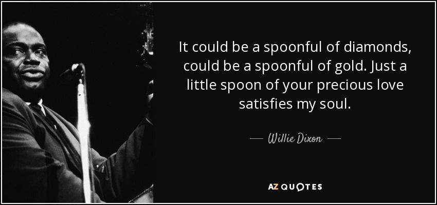 It could be a spoonful of diamonds, could be a spoonful of gold. Just a little spoon of your precious love satisfies my soul.