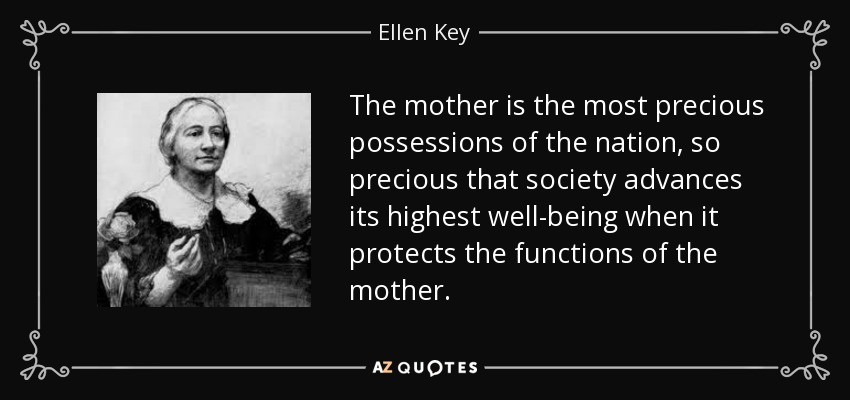 The mother is the most precious possessions of the nation, so precious that society advances its highest well-being when it protects the functions of the mother.