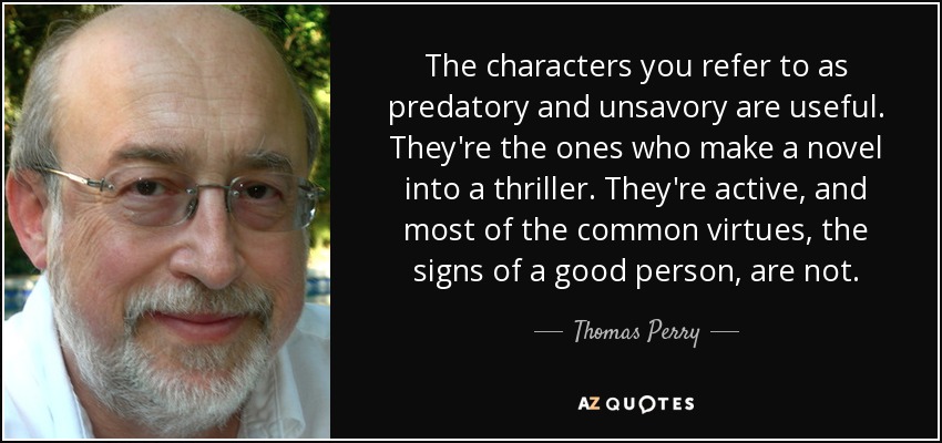 The characters you refer to as predatory and unsavory are useful. They're the ones who make a novel into a thriller. They're active, and most of the common virtues, the signs of a good person, are not.