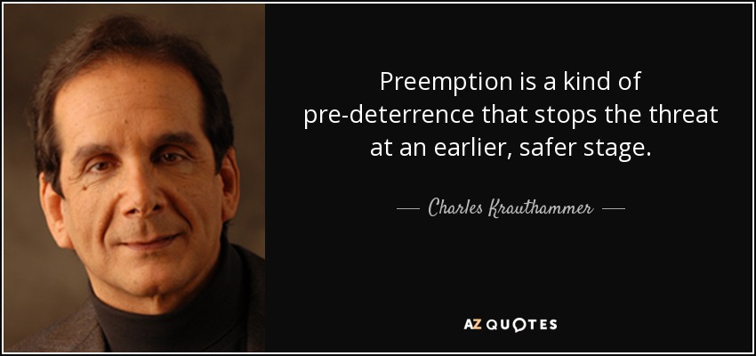 Preemption is a kind of pre-deterrence that stops the threat at an earlier, safer stage.