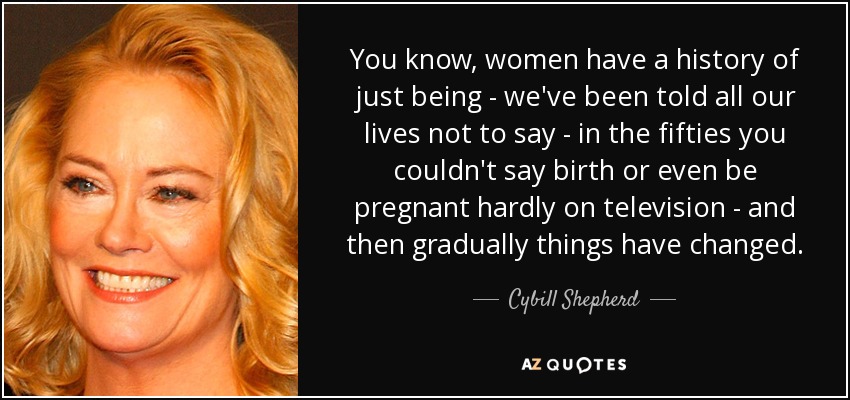 You know, women have a history of just being - we've been told all our lives not to say - in the fifties you couldn't say birth or even be pregnant hardly on television - and then gradually things have changed.