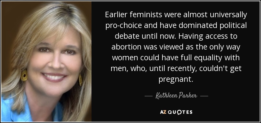 Earlier feminists were almost universally pro-choice and have dominated political debate until now. Having access to abortion was viewed as the only way women could have full equality with men, who, until recently, couldn't get pregnant.