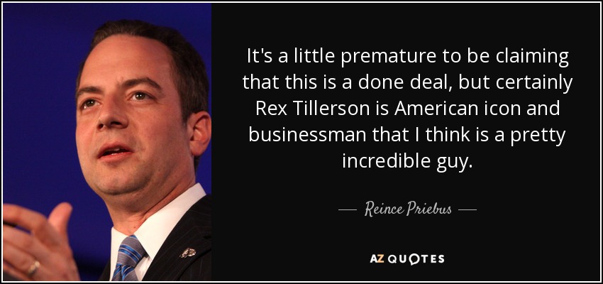 It's a little premature to be claiming that this is a done deal, but certainly Rex Tillerson is American icon and businessman that I think is a pretty incredible guy.