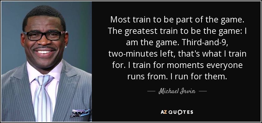 Most train to be part of the game. The greatest train to be the game: I am the game. Third-and-9, two-minutes left, that's what I train for. I train for moments everyone runs from. I run for them.
