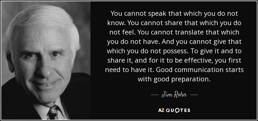 You cannot speak that which you do not know. You cannot share that which you do not feel. You cannot translate that which you do not have. And you cannot give that which you do not possess. To give it and to share it, and for it to be effective, you first need to have it. Good communication starts with good preparation.