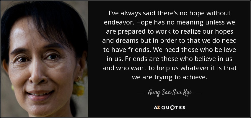 I've always said there's no hope without endeavor. Hope has no meaning unless we are prepared to work to realize our hopes and dreams but in order to that we do need to have friends. We need those who believe in us. Friends are those who believe in us and who want to help us whatever it is that we are trying to achieve.
