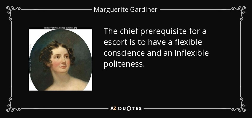 The chief prerequisite for a escort is to have a flexible conscience and an inflexible politeness.