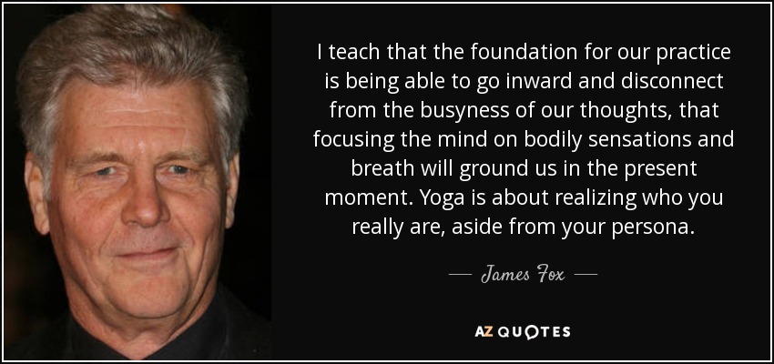 I teach that the foundation for our practice is being able to go inward and disconnect from the busyness of our thoughts, that focusing the mind on bodily sensations and breath will ground us in the present moment. Yoga is about realizing who you really are, aside from your persona.