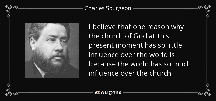 I believe that one reason why the church of God at this present moment has so little influence over the world is because the world has so much influence over the church.