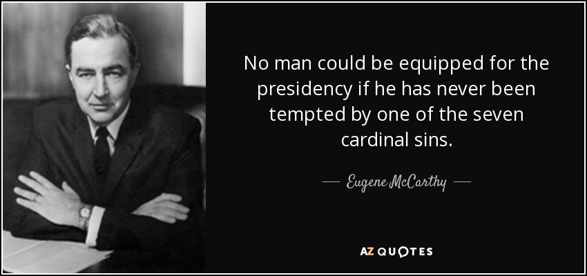 No man could be equipped for the presidency if he has never been tempted by one of the seven cardinal sins.
