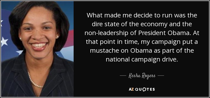 What made me decide to run was the dire state of the economy and the non-leadership of President Obama. At that point in time, my campaign put a mustache on Obama as part of the national campaign drive.