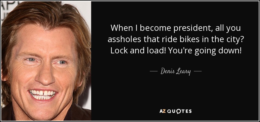 When I become president, all you assholes that ride bikes in the city? Lock and load! You're going down!